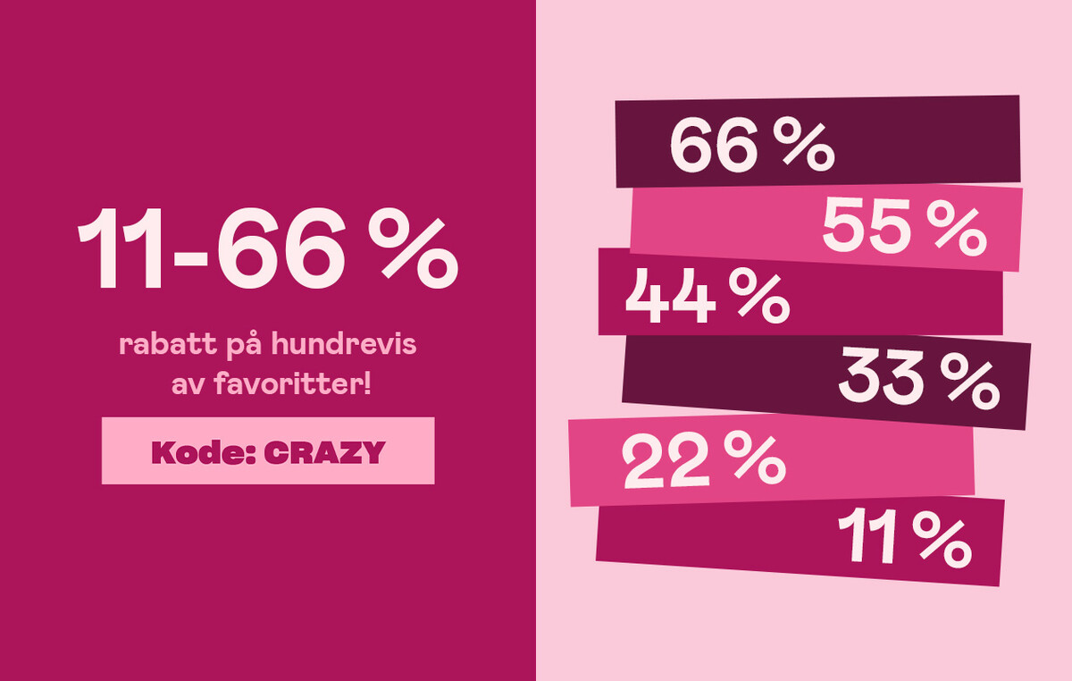 | Bruk rabattkoden CRAZY i kassen Rabattkoder kan ikke kombineres, gjelder på nåværende priser og utvalgte produkter til 11/11 kl. 23:59. | |