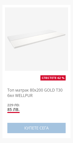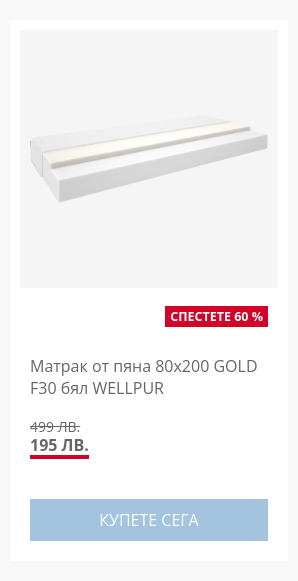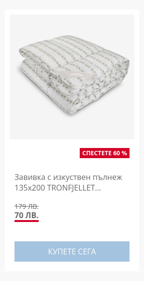 Ето защо предлагаме до 60% намаление на избрани артикули за сън като матраци, завивки и възглавници. Нашите продукти са разработени с оглед на вашите нужди и ще ви помогнат да си възвърнете качествения сън. Промоцията е валидна до сряда, 11 декември 2024 г.