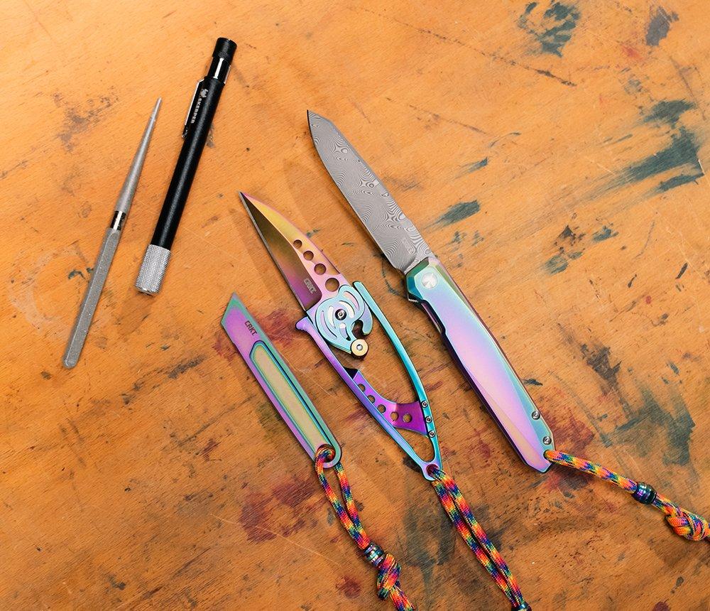 | | New CRKT Iridescent collection Add some colour to your life! | | | | The CRKT Iridescent collection consists of some of CRKT's most popular models with a new look. Each knife has an iridescent titanium nitride coating that appears to subtly change colour depending on the light. The rainbow lanyard with matching bead neatly matches the colours of the knife. This collection is ideal for those who like to add some colour to their EDC. Discover | | | |