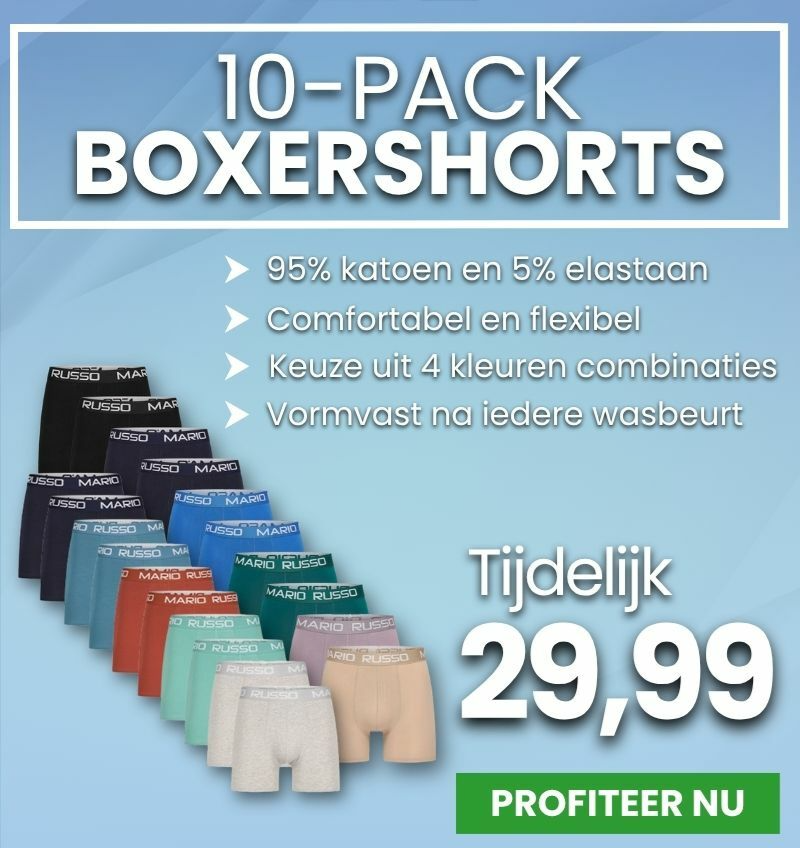 Scoor nu een 10-pack boxershorts voor slechts 29,99 Topkwaliteit voor een bodemprijs én nu verkrijgbaar in 4 prachtige kleurencombinaties!