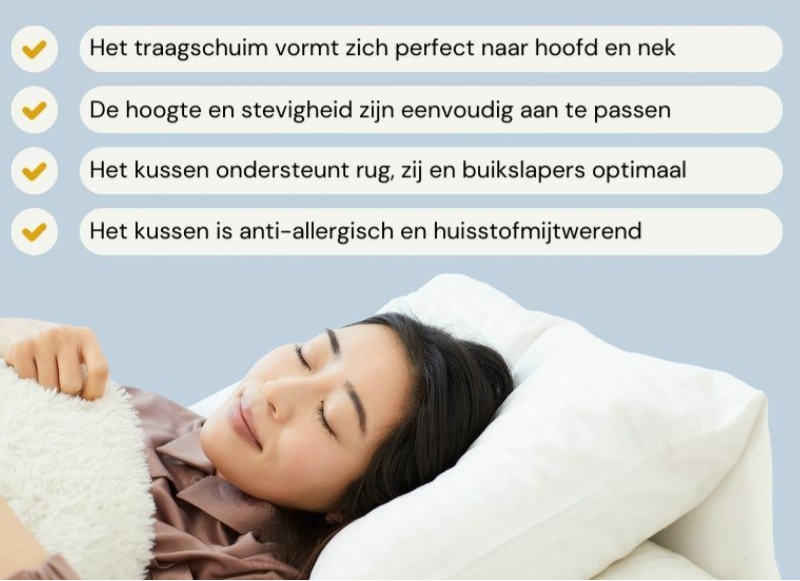 Het Hoofdkussen CloudAir is volledig aanpasbaar en biedt perfecte ondersteuning voor nek en schouders. Ademend, comfortabel en ideaal voor zij- en rugslapers.