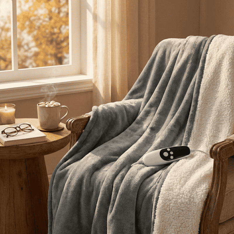 Deze elektrische knuffeldeken houdt je warm op koude avonden. Superzacht sherpa fleece, flanel en eenvoudig instelbare warmte voor jouw perfecte comfort.