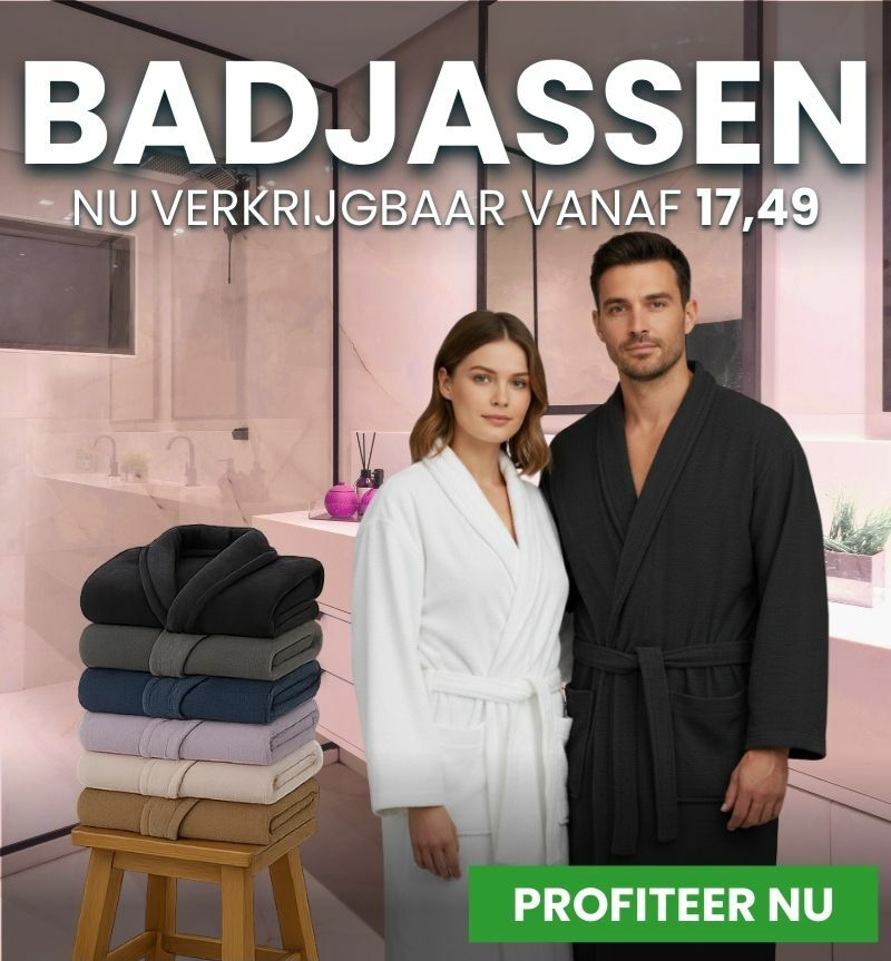 | Thuis ontspannen begint hier. Onze badjassen combineren luxe, warmte en comfort in één. Vandaag extra scherp geprijsd, op=op | Nu voor slechts 17,49 😳 |