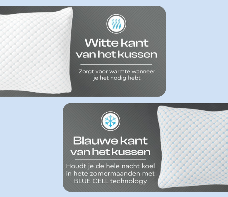 | Met het Nanotech Hoofdkussen geniet je van ultieme ondersteuning en comfort. Het ergonomische memory foam vormt zich naar je hoofd en nek, waardoor je minder last hebt van nek- en schouderklachten. Het hoofdkussen heeft ook een slimme, dubbele tijk: één kant voor verkoeling, de andere voor warmte. Zo kies je zelf wat jij nodig hebt, elke nacht weer.