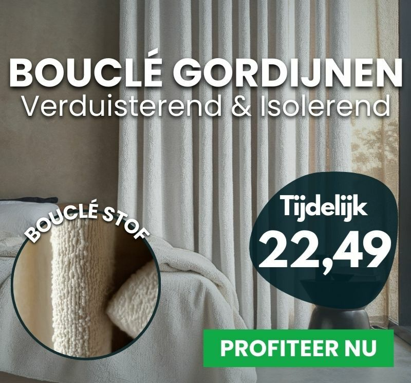 Geef je interieur direct een luxe uitstraling ✨ Deze Bouclé gordijnen brengen warmte en sfeer in elke ruimte dankzij hun rijke textuur. Verkrijgbaar in 150 of 300 cm en met haken of ringen, zodat ze altijd perfect passen bij jouw interieur.
