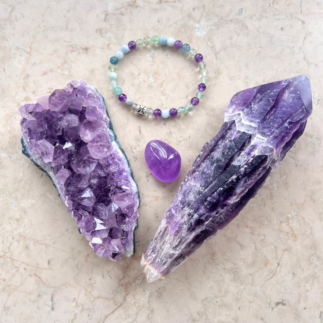 Ametist! Stenen för att slappna av, släppa taget, landa i sig själv, känna och uppleva helhet och mening ... ametist är så mycket och dessutom februaris månadssten och en kristall för både Vattumannens och Fiskarnas stjärntecken.