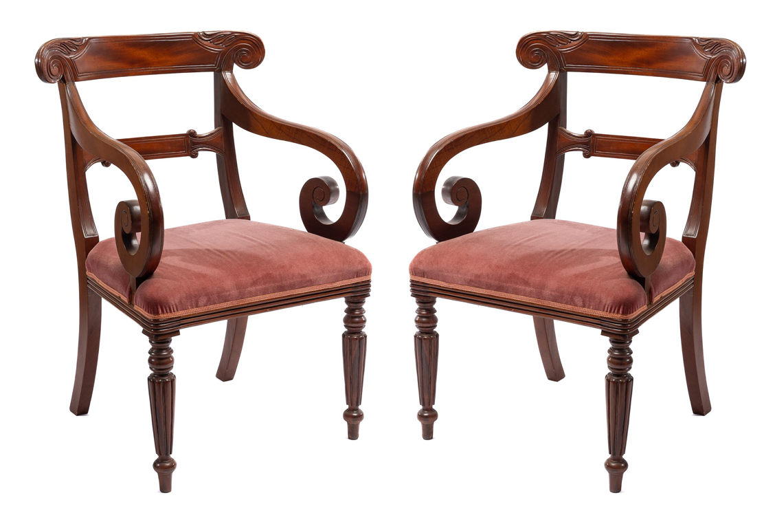 11. Vintage C:1970 Australian Regency design arm chairs in mahogany