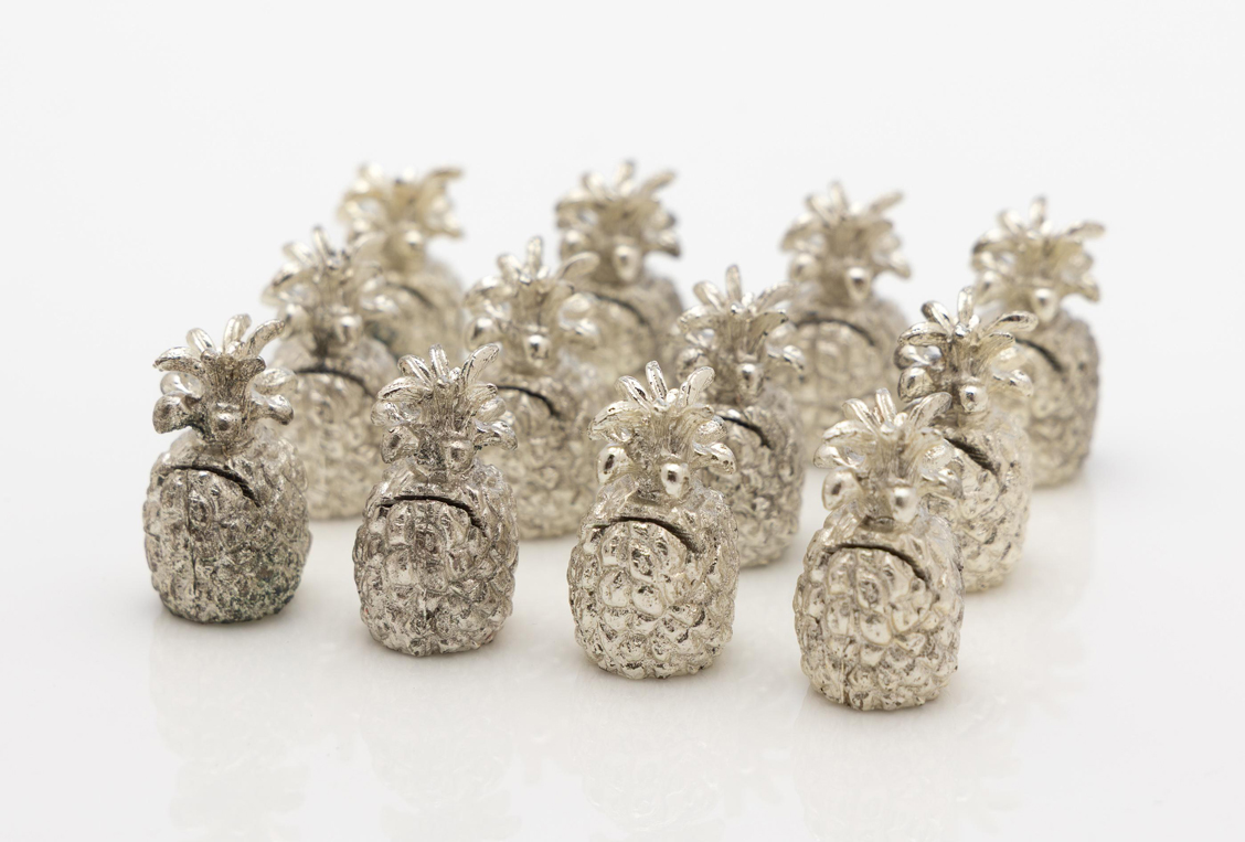 158. 12 vintage silverplate pineapple form placecard holders
