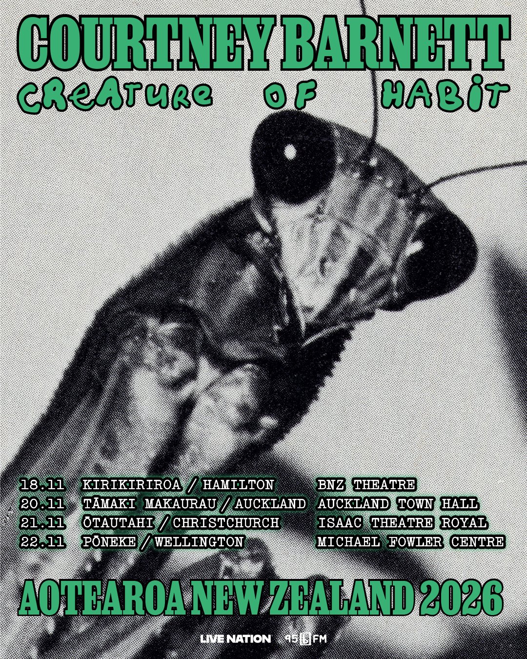 Courtney Barnett returns to Aotearoa this November with her Creature of Habit Tour, celebrating her new album alongside much‑loved fan favourites. Bringing her signature mix of indie rock and storytelling, she’ll perform across Hamilton, Auckland, Christchurch and Wellington. |