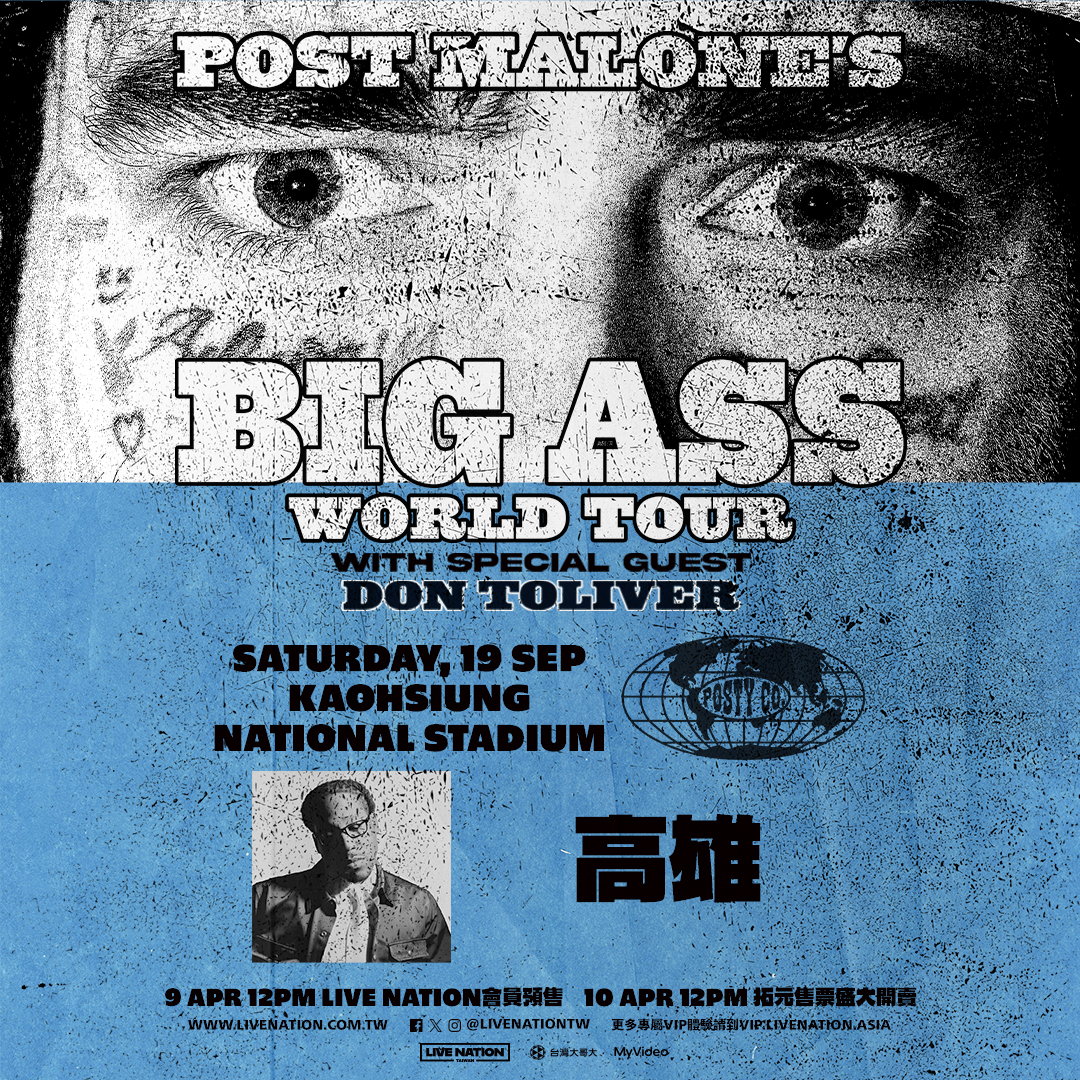 The wildest show of 2026 is coming... Post Malone Presents The BIG ASS Stadium World Tour with Don Toliver is hitting Kaohsiung! Grab your tickets NOW!