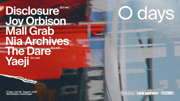 I 2026 vender O Days tilbage til Refshaleøen fra 30. juli til 1. august og samler igen musik, kunst, performance og samtaler ved vandet - båret af den samme stemning som fra begyndelsen. I år kan man opleve Disclosure (DJ-Set), Joy Orbison, Nia Archives, Mall Grab, The Dare (DJ-Set) og Yaeji (DJ-Set), og flere navne offentliggøres løbende.