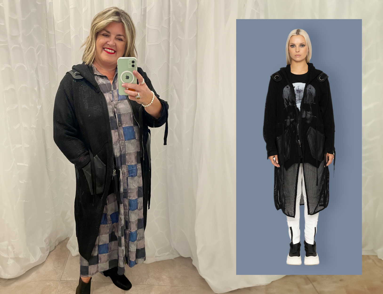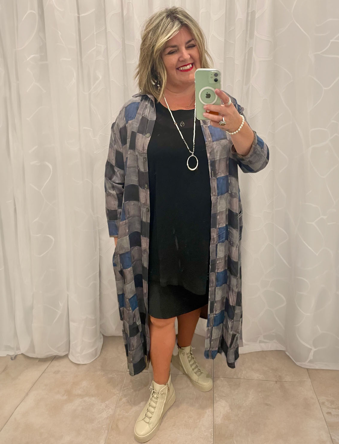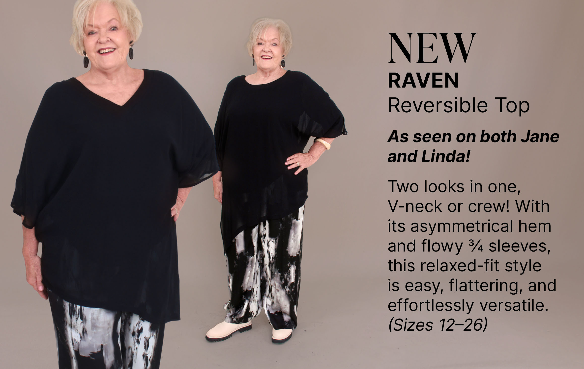 As an overshirt, Jane’s layered it over the go-to Cashews Slip (the ultimate wardrobe staple!) and the brand-new Raven Reversible Top (also below), finishing the look with the Trooper. It’s relaxed yet smart — the kind of effortless styling that looks great and makes you feel fashionable and fabulous!