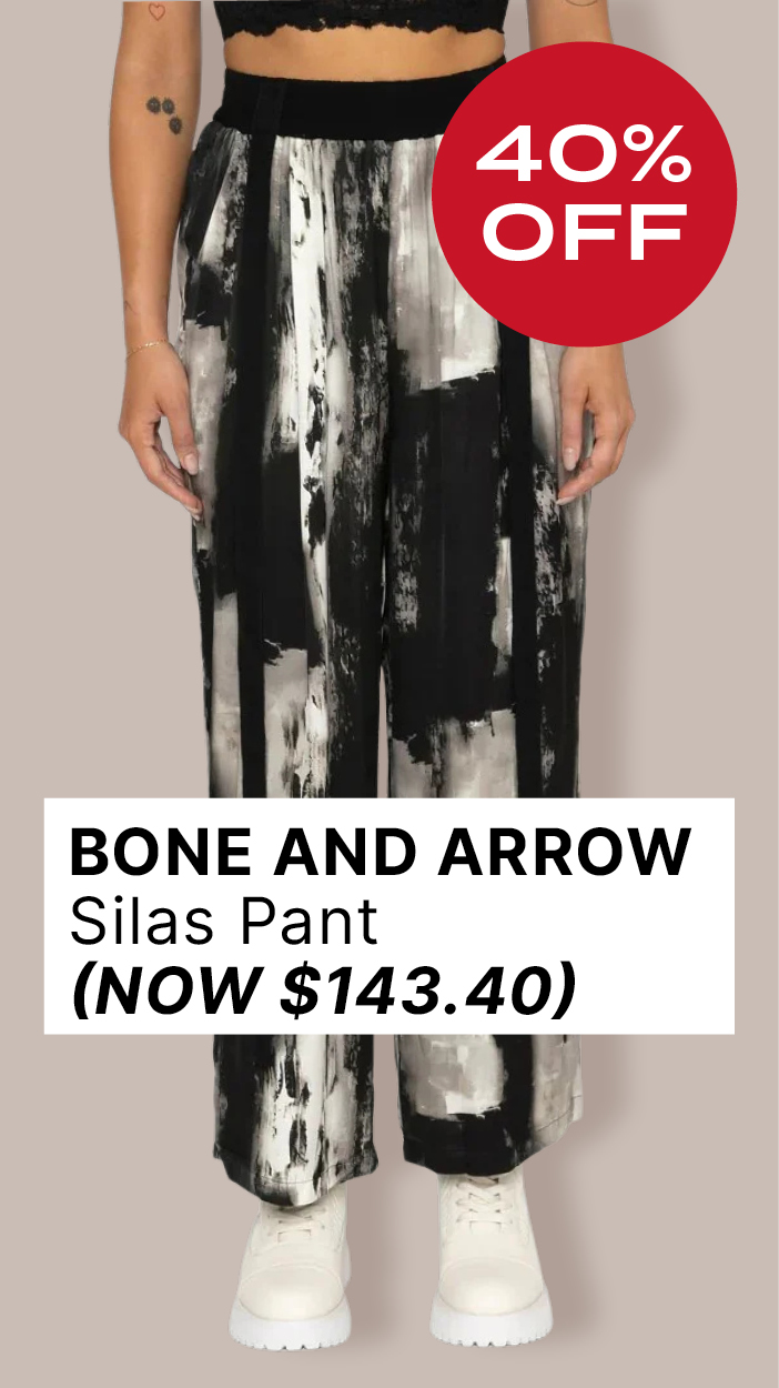 In a more contemporary take, Jane wears the Trooper as a shirtdress. It’s striking on its own, but she’s added the Bone & Arrow Fifer Jacket for extra dimension and texture.