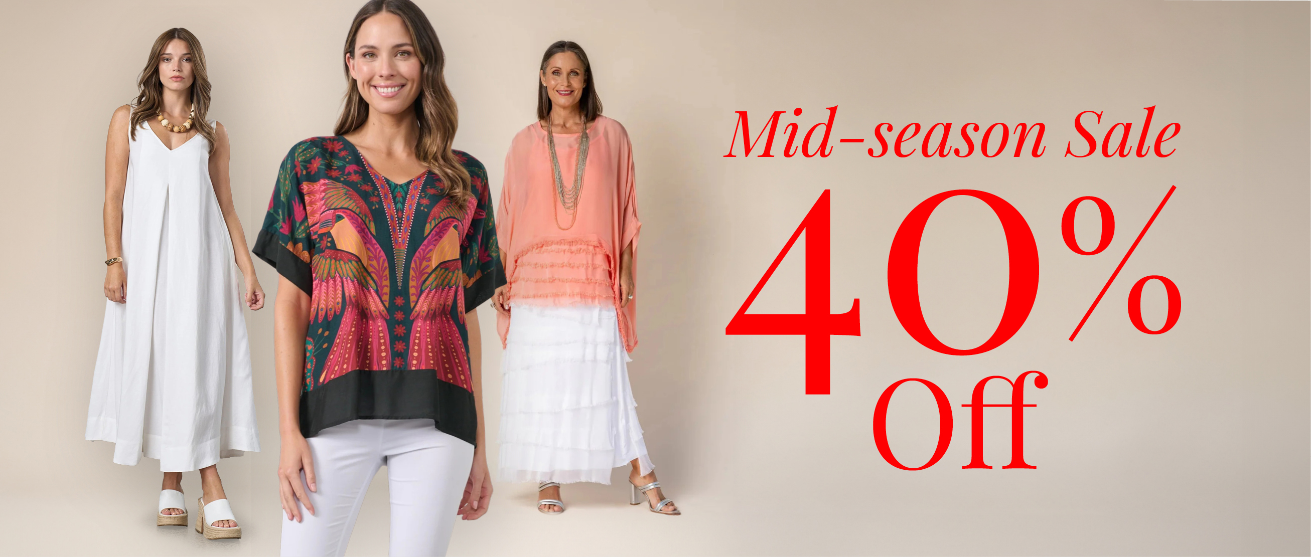 Mid-season Sale! 40% off selected latest season styles and more!