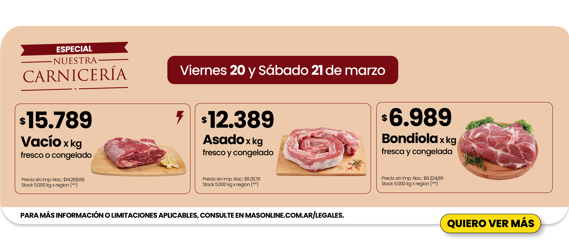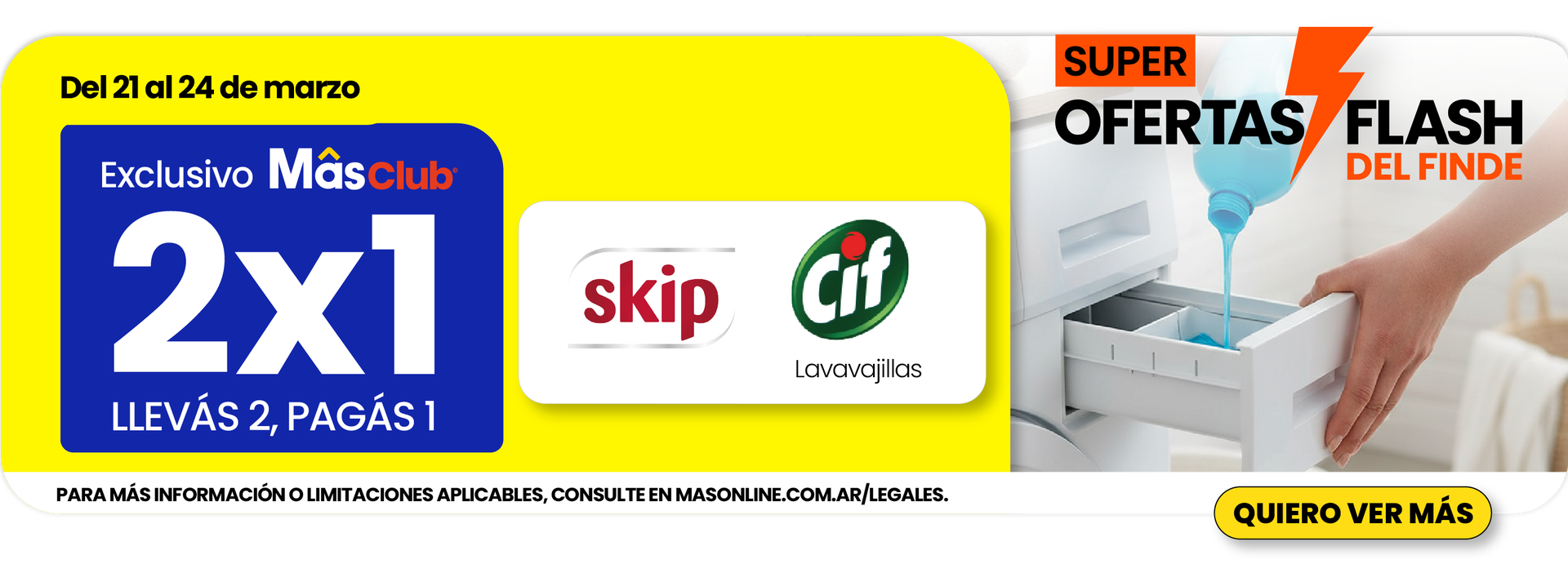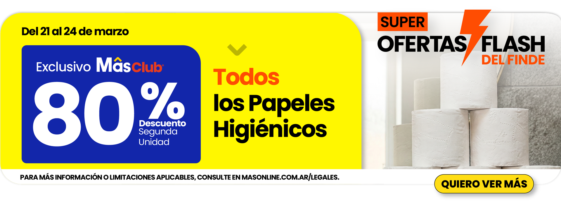 OFERTAS FLASH : PROMOCIÓN VÁLIDA PARA CONSUMO FAMILIAR, EN TODAS LAS TIENDAS CHANGOMAS DE ARGENTINA DESDE EL 21 al 24 DE MARZO O HASTA AGOTAR STOCK, LO QUE OCURRA PRIMERO. NO ES ACUMULABLE CON OTRAS PROMOCIONES. Para más información o limitaciones aplicables consulte en masonline.com.ar/legales ó comuníquese gratuitamente al teléfono de Hiper, Super y Chango Mâs: 0800-888-9256. MâsOnline: 0810 -444-9256 Dorinka SRL. CUIT.: 30-67813830-0. Bolivia 5831 C1419DVM CABA..