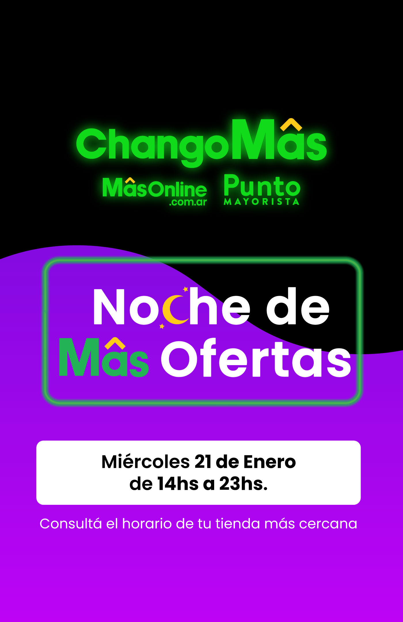 Promoción válida el día 21/01/2026 desde las 14 hs hasta las 23 hs en las tiendas ChangoMás, Punto Mayorista y MasOnline. Para más información o limitaciones aplicables, consulte en MasOnline.com.ar/Legales. DORINKA SRL Bolivia 5831, C.A.B.A., CUIT 30-67813830-0