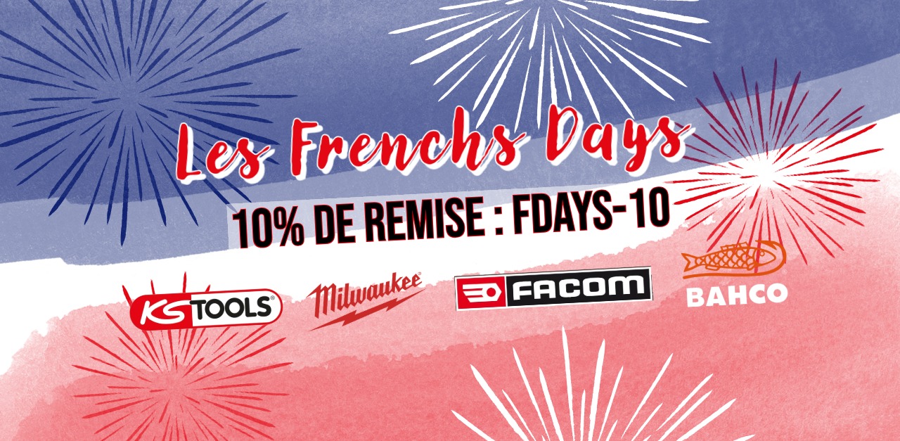 Dernière ligne droite pour profiter des French Days : 10% de réduction immédiate sur les marques Facom, KS Tools, Bahco et Milwaukee avec le code FDAYS-10 (hors promos déjà en cours)