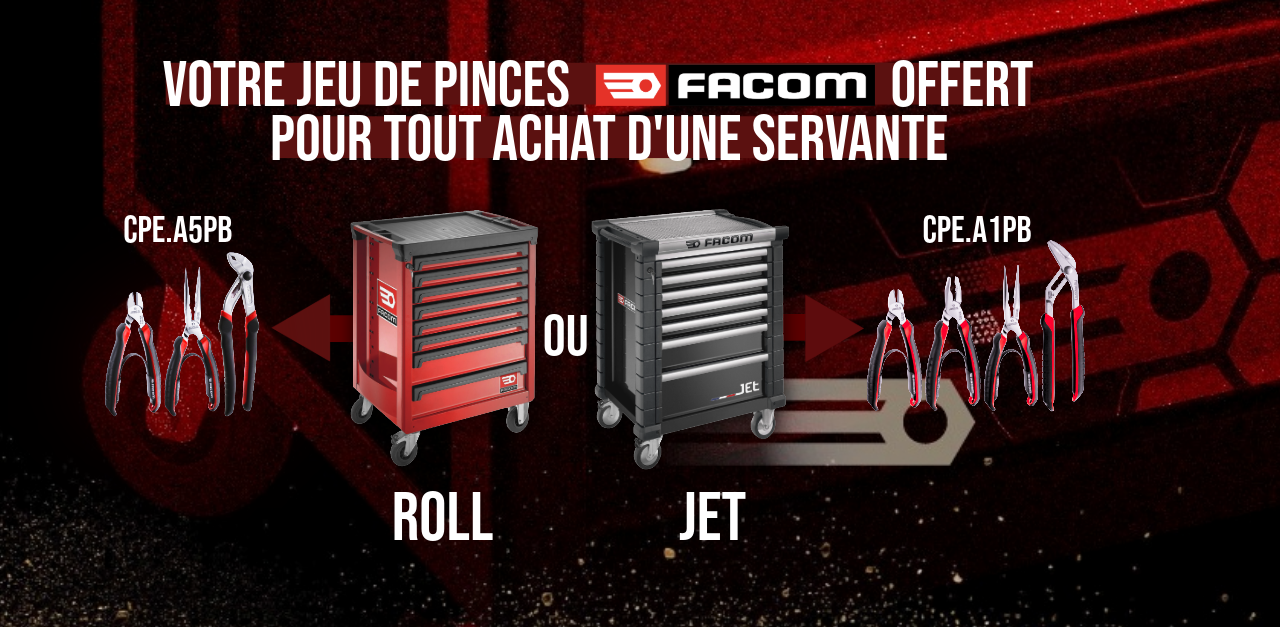 💥Un jeu de 4 pinces CPE.A1PB d’une valeur de 109,90€ OFFERT pour l’achat de toutes servantes de la gamme JET