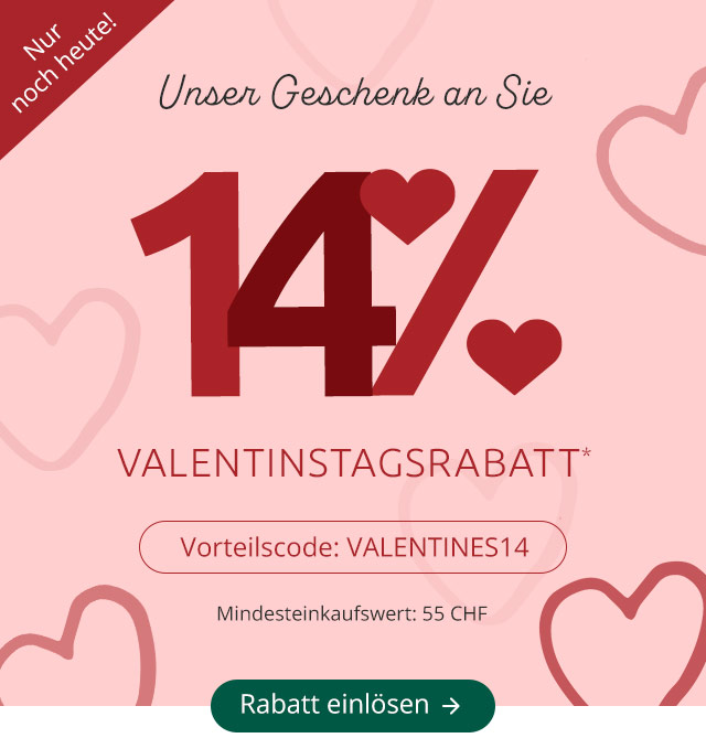 Letzte Chance: Nur noch heute 14 % Rabatt sichern! ❤️