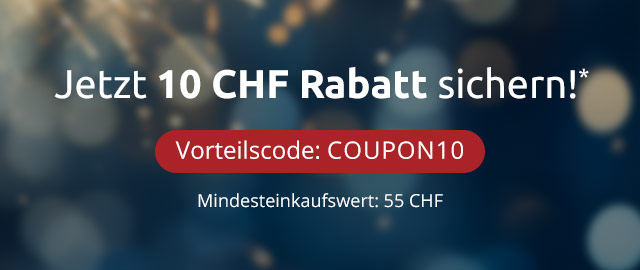 *Ihr 10 CHF Gutschein ist nur einmalig gültig ab 55 CHF Mindesteinkaufswert bei einer Bestellung bis zum 11.01.2026. Keine Barauszahlung. Die Aktion ist nicht übertragbar und kann nicht in Verbindung mit anderen Aktionen oder bei Kooperationspartnern eingelöst werden. Die Vorteilsnummer muss bei der Bestellung angegeben werden. Bei Unterschreitung des Mindesteinkaufswertes durch Widerruf behalten wir uns das Recht vor, Den Gutschein zu stornieren. Der Wert von nicht zurückgesendeten Waren ist in diesem Fall in voller Höhe zu bezahlen. Der Gutschein kann nicht auf bereits getätigte Bestellungen gewährt werden. Geschenk-Gutscheine, Bücher sowie Zeitschriften sind von der Aktion ausgenommen.