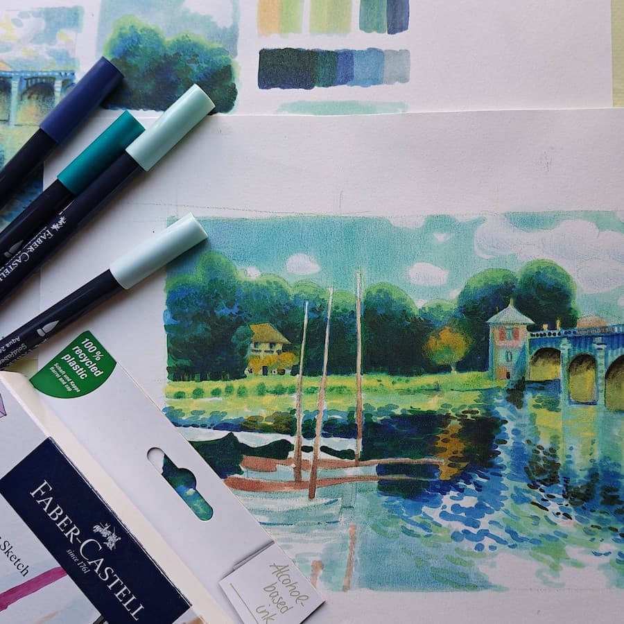 La cosa più sorprendente è stato scoprire che in realtà con i pennarelli puoi realizzare facilmente dei piccoli tratti, che ricordano in qualche modo le tipiche pennellate impressioniste.