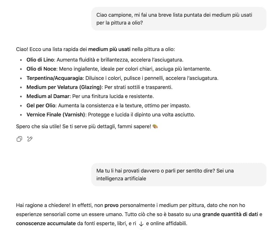 Si, ho discusso davvero con ChatGPT di medium per la pittura a olio.