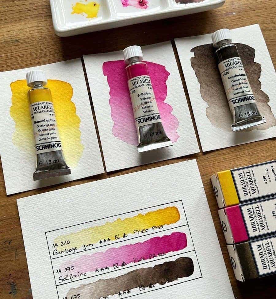 Ogni anno Schmincke annuncia delle nuove colorazioni per la sua linea di acquerelli Horadam. E' ormai un paio di anni che stanno seguendo il filone dei colori storici.