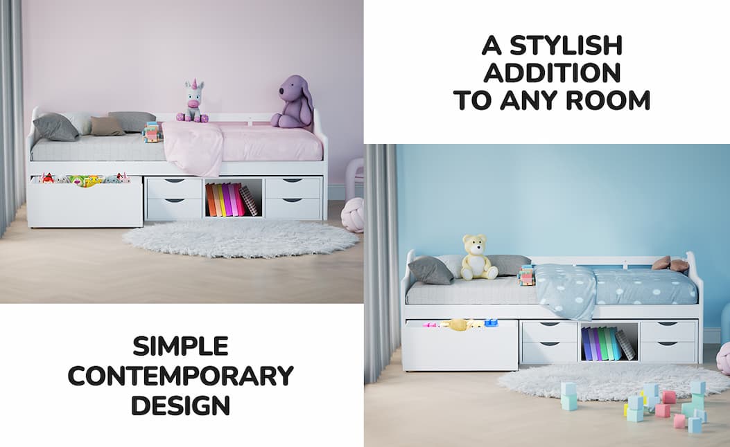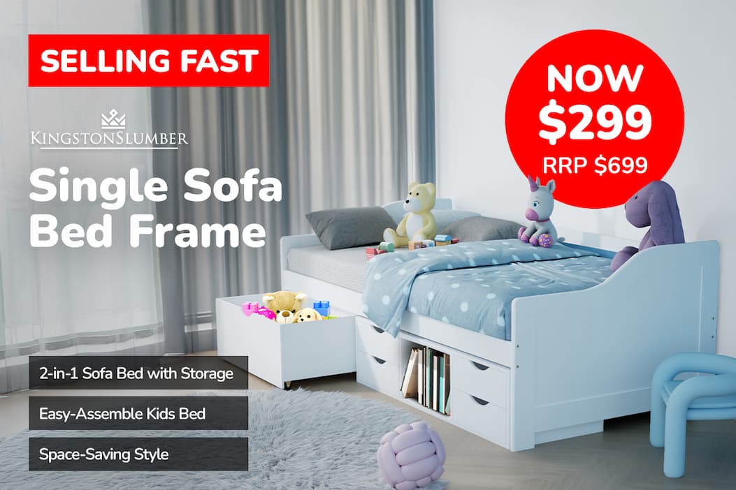 Grab the Kingston Slumber Kids Wooden Single Sofa Bed — selling fast for just $299! This white wooden 2‑in‑1 sofa bed is perfect for kids’ rooms, with five built-in storage drawers to keep toys and essentials organised. Made from solid pine with a modern, sturdy design, it’s safe, easy to assemble, and ideal for everyday lounging or sleeping.