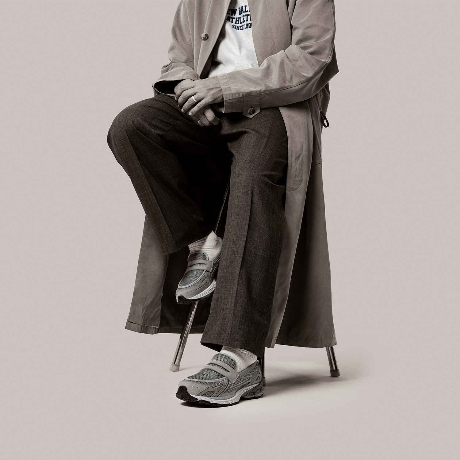 The juxtaposition of sneakers and more formal attire isn’t a new idea, but it’s never been done quite like this. |