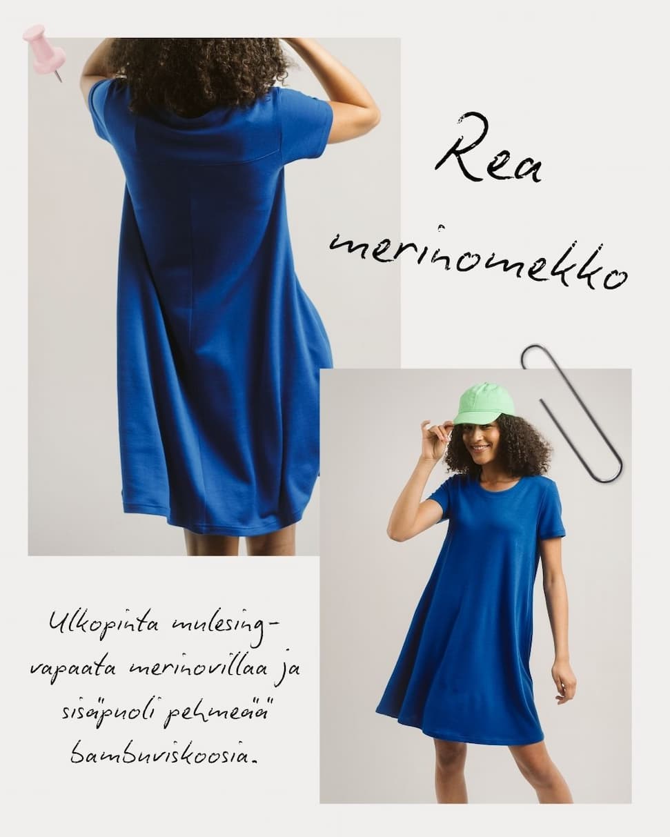 Kevään uutuus Rea-mekko on valmistettu teidän suosikiksi nousseesta tuplaneuloksesta, joka tekee siitä ihanteellisen siirtymäkauden vaihteleviin keleihin. Mekko toimii erinomaisesti myös viileämmällä säällä ja on helppo yhdistää sekä sukkahousuihin, että housuihin kerrospukeutumisen osana.
