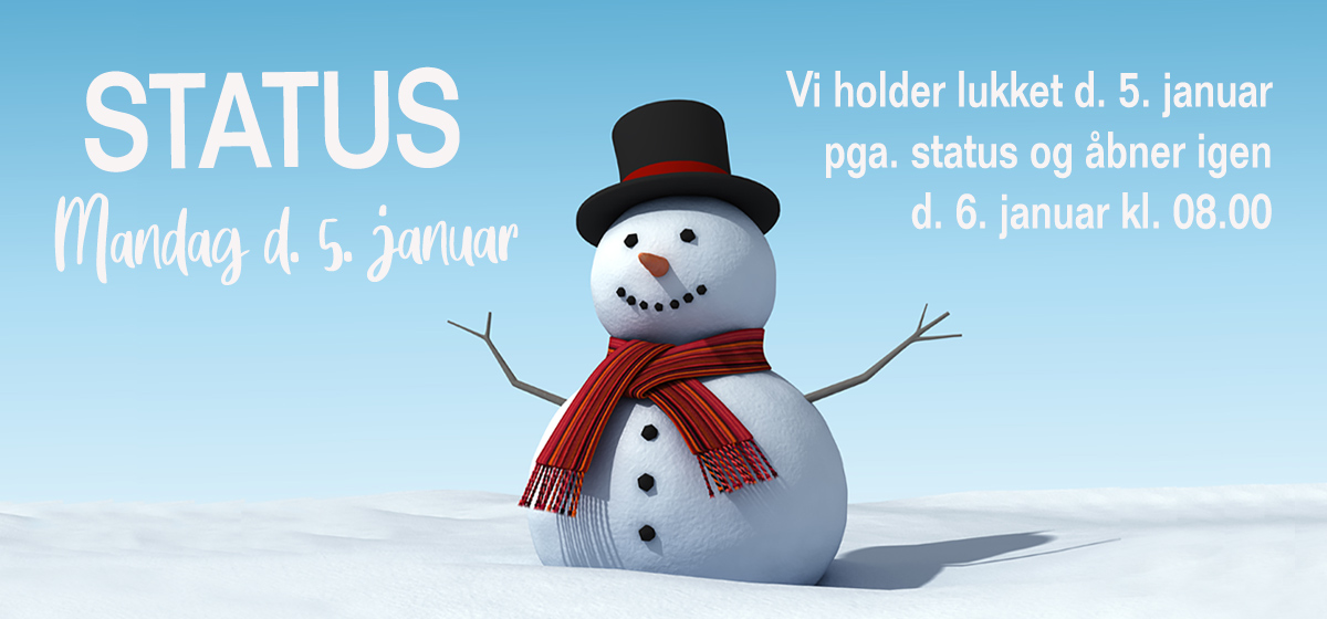 ❌ Bemærk: Vi holder lukket mandag d. 5. januar 2026 på grund af status.