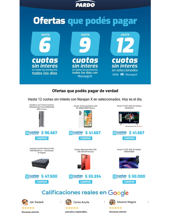Hasta 12 cuotas sin interés con Narajan X en seleccionados. Hoy es el día.