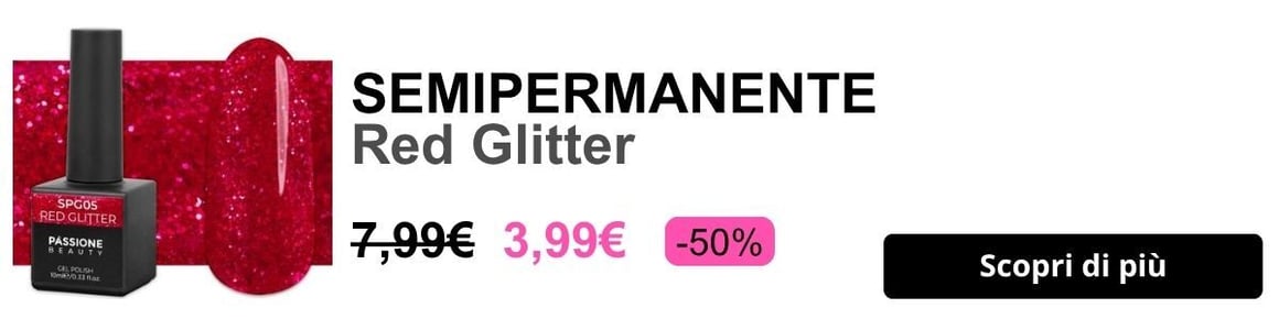 Rosso ricco e pigmentato, illuminato da una cascata di microglitter della stessa tonalità