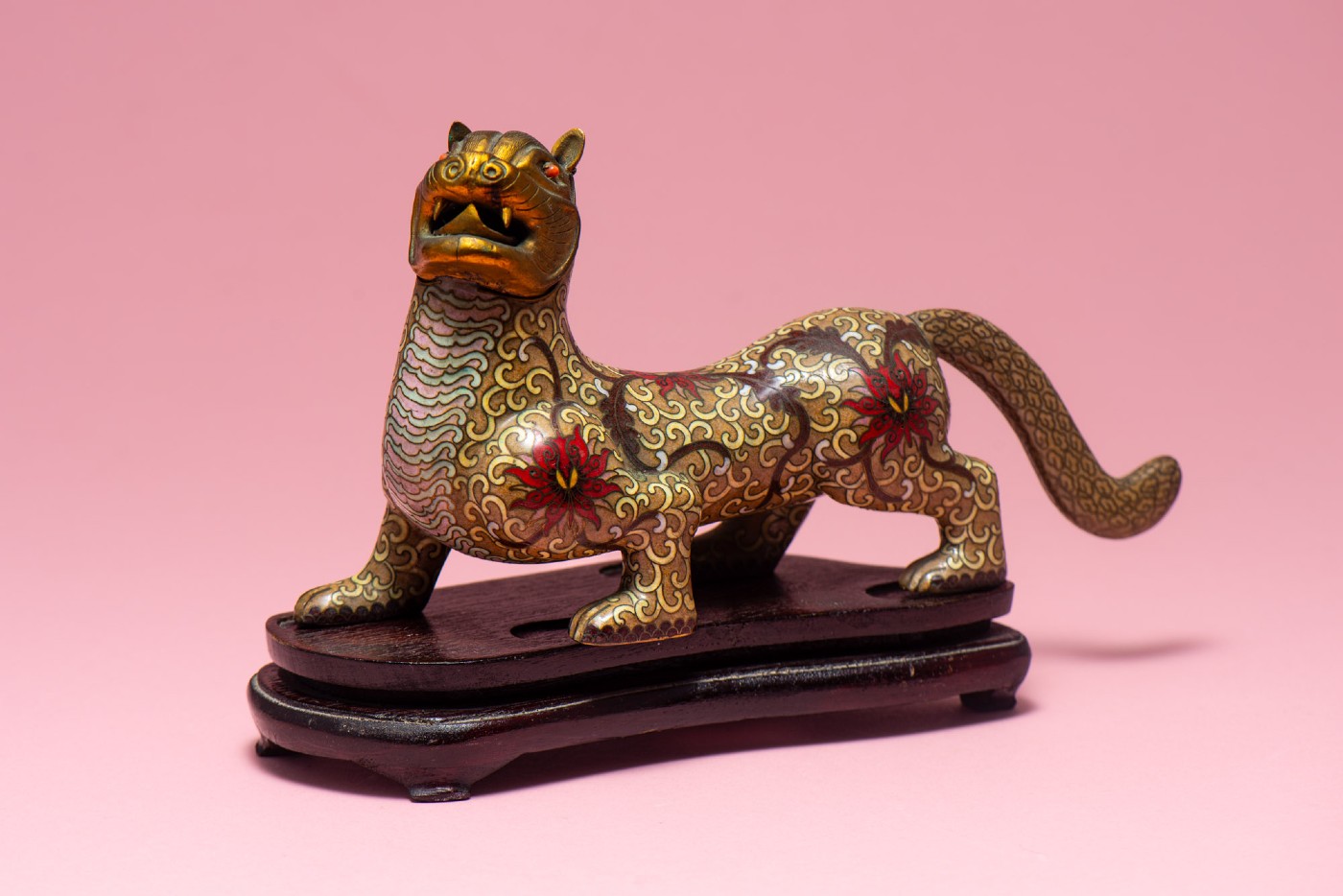 Leopard, cloisonné enamel metal sculpture