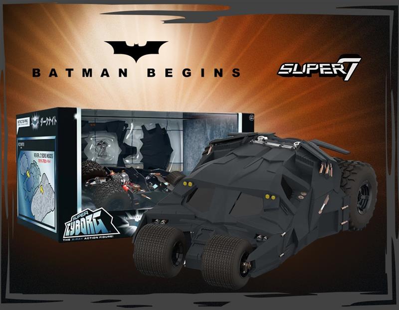 Rolling into our warehouse this week is the Batman Begins (2005) - Batmobile Tumbler Super Cyborg 10" Action Figure Vehicle from Super7. Take a peek inside the iconic vehicle with this Super Cyborg x-ray action figure.