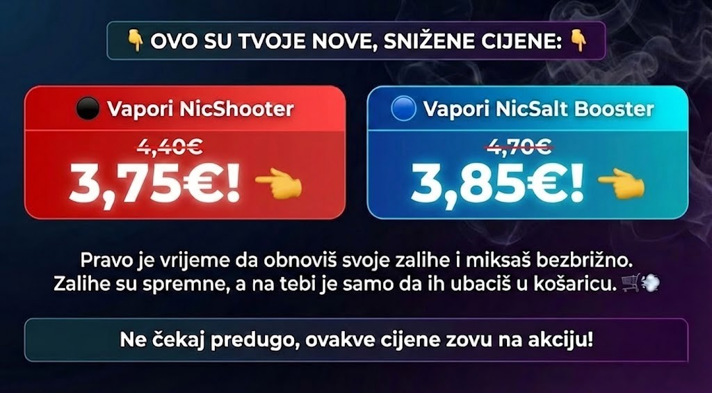 Posjetite naš web shop Vapoteka.hr i kupujte po najboljih cijenama na tržištu aroma i baza.