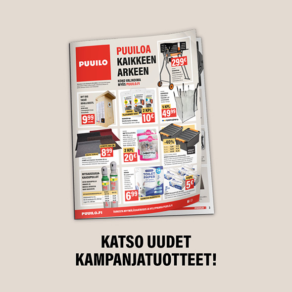 Nyt olis kampanjassa mm. tuotteita puunkaatoon, esikasvatukseen, rakentamiseen ja remontointiin.