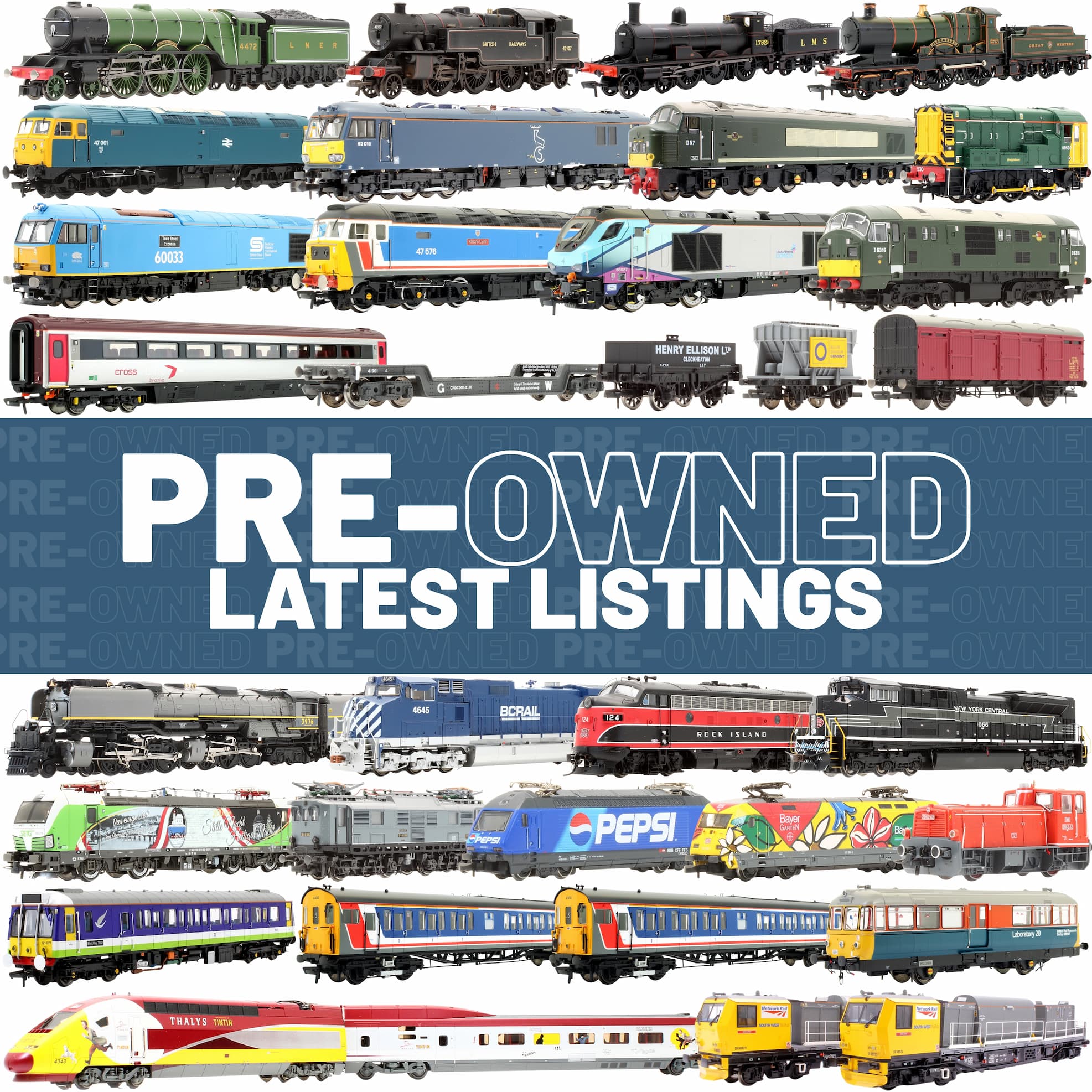 We are constantly adding new preowned listings to our website! Last week yopu cleared us out of many of our new listings but are team are always working hard to add more including locomotives, rolling stock, accessories and more in OO, HO, N O, Z and other scales.
