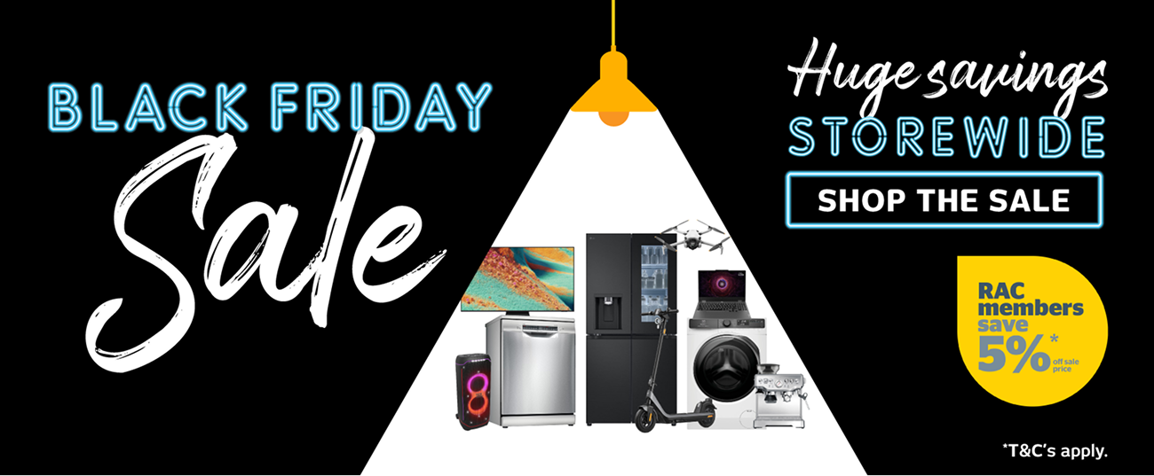 *Available to all valid RAC Members when a valid RAC membership card is displayed in-store or used online. Discount not applicable to the following brands/products which are excluded from the RAC member offering including but not limited to: Apple (iPhone & Watch), ASKO, AEG, Consoles (Nintendo, PlayStation & Xbox), Falcon, Falmec, Fisher & Paykel (Built-in Refrigeration, Cooking Appliances, Dishwashers & Series 11 Laundry only), SMEG (Agency product only), Gaggenau, La Germania, Liebherr, Miele (Agency product only), Neff and Speed Queen. Retravision acts as an agent for some of these brands and isn't permitted to offer a discount or bonus. Discount applies to advertised price of products only, and does not apply to installation services or gift cards. Up to 30% Off Selected LG OLED & Mini LED TVs, offer ends 03/12/25. Save up to 40% on Selected Lenovo Tablets & Accessories, offer ends 01/12/25. Black Friday Sale, offer ends 03/12/25.