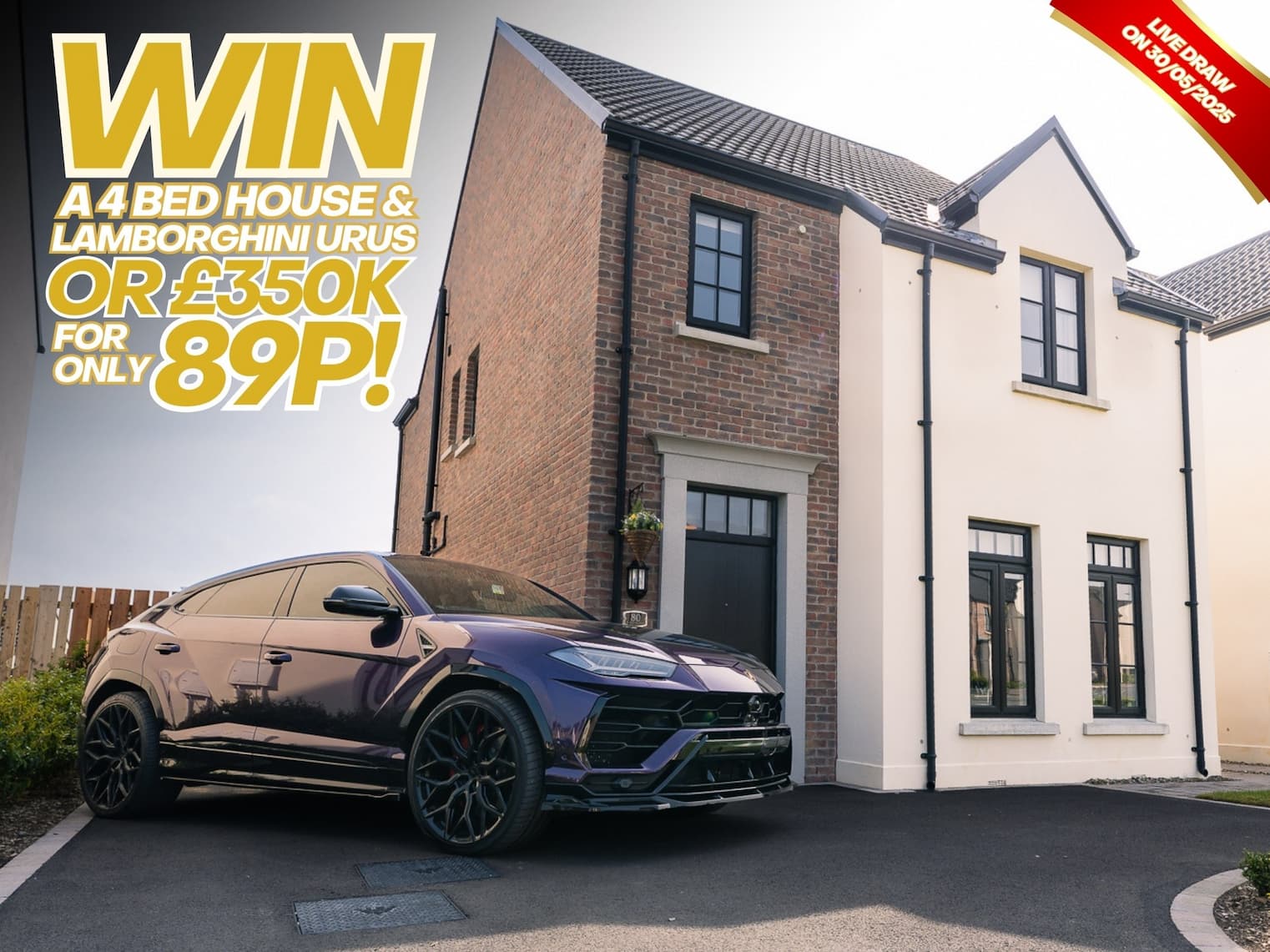 WIN £350,000 OR A 4 BEDROOM HOUSE & LAMBORGHINI URUS FOR ONLY 89P - DRAWS FRIDAY AT 11PM