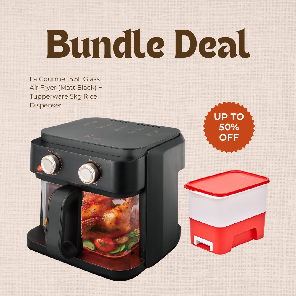 La Gourmet 5.5L Glass Air Fryer (Matt Black) + Tupperware 5kg Rice Dispenser