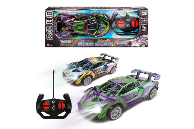 Streetracer med unikt holografisk design, indbygget lys og driftfunktion. Kombinerer fart, stil og fede effekter, der får bilen til at skinne under kørslen!