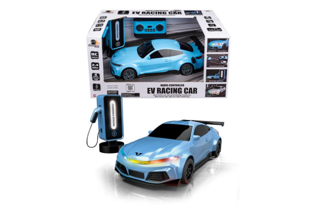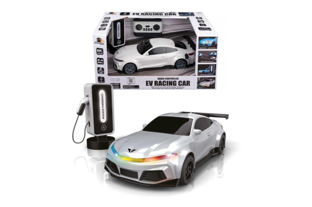 R/C Elbil bringer moderne teknologi ind i legen. Den flotte sportsvogn leverer en realistisk køreoplevelse, komplet med en funktionel ladestander og et væld af fede effekter. Bilen er udstyret med lys og spiller musik og lyde under kørslen, hvilket sikrer en autentisk og sjov oplevelse.