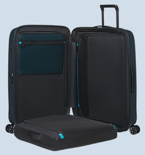 Descubre la versatilidad de PackFix™, nuestro avanzado tercer compartimento integrado en el interior de Nexis. Maximiza la organización cuando lo despliegas, guarda tus pertenencias elegantemente separadas y se transforma en una amplia bolsa extraíble siempre que necesites un plus de flexibilidad. Diseñado para adaptarse con elegancia a tu forma de viajar.