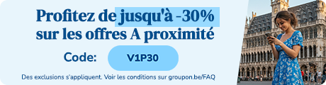 | | Exype - Lounge Bar & Simulateur de... | | Session de simulateur de course au choix | | Déjà 1.000 acheteurs | | 30,00 € Dès 14,99 € | | 13,49 € avec le code PROMO, Expire le 17.2 | | | |  | | Share and Fun | | Plaisir pour tous : mini-golf, fléchettes, shuffleboard ou color fun | | Déjà 50 acheteurs | | 9,00 € Dès 5,00 € | | 4,89 € - Code PROMO - App-only | | | | | | |  | | L Altro Mondo | | Menu italien en 3 services à la carte | | Bruxelles, BRUXELLES | | Déjà 950 acheteurs | | | | |  | | Beauty Salon Spa | | Modelage, avec option soin beauté ou sauna privatif | | 85,00 € Dès 39,90 € | | 35,99 € avec le code PROMO, Expire le 17.2 | | | | | | |  | | Aestetic Antiaging Center | | Soin du visage au choix hydratant, anti-âge, coup d'éclat ou peeling | | Déjà 50 acheteurs | | 130,00 € Dès 49,99 € | | 44,99 € avec le code PROMO, Expire le 17.2 | | | |  | | SERENDIP Spa & Wellbeing | | Massages & rituels bien-être pour relâcher le corps et l’esprit | | Bruxelles, BRUXELLES | | Déjà 50 acheteurs | | 85,00 € Dès 59,99 € | | 56,99 € avec le code PROMO, Expire le 17.2 | | | | | | |  | | Technivision FZE | | Microsoft Office Professional Plus 2024 ou Office Standard 2024 | | Déjà 1.000 acheteurs | | 128,12 € Dès 11,99 € | | 10,79 € avec le code PROMO, Expire le 17.2 | | | |  | | EBA ESTHETIK | | Lifting Coréen avec radiofréquence ou carbon laser glow ou soin HIFU | | Déjà 100 acheteurs | | 120,00 € Dès 72,00 € | | 64,89 € avec le code PROMO, Expire le 17.2 | | | | | | |  | | Pause toi | | Soin et massage avec Pause toi | | 50,00 € Dès 26,90 € | | 24,29 € avec le code PROMO, Expire le 17.2 | | | |  | | Be Beautiful | | Forfait shampoing, soin, coupe et séchage à Bruxelles | | Bruxelles, BRUXELLES | 33,00 € 16,99 € Dès 13,99 € Fin de la promotion le 22/02 | | | | | | |  | | Technipro Service | | Entretien de chaudière murale au gaz | | Déjà 1.000 acheteurs | | 120,00 € 79,99 € | | 77,59 € - Code PROMO - App-only | | | |  | | Colorland (BE) | | Livre photo Premium A4 de 28 à 140 pages avec Colorland | | Déjà 150 acheteurs | | 39,99 € Dès 14,99 € | | 13,49 € avec le code PROMO, Expire le 17.2 | | | | | | |  | | Colorland | | Livre photo classique format A4 vertical/horizontal de 100 à 140 pages | | Déjà 1.000 acheteurs | 83,99 € 19,99 € Dès 16,49 € Fin de la promotion le 22/02 | | | |  | | La corte gastronomica | | Menu Italien en 3 services | | Déjà 900 acheteurs | | | | | | | |  | | Enjoy the moment | | Séance détente et beauté du corps avec Enjoy the moment | | Déjà 250 acheteurs | | 80,00 € Dès 49,99 € | | 47,49 € avec le code PROMO, Expire le 17.2 | | | |  | | La Cueva De Castilla | | Menu Gastronomique pour 2 ou 4 personnes à La Cueva De Castilla | | Déjà 350 acheteurs | | 138,00 € Dès 59,90 € | | 56,99 € avec le code PROMO, Expire le 17.2 | | | | | | |  | | Terborght | | Laissez-vous surprendre : menu en 3 services avec tapas & mignardises | | 75,00 € Dès 55,00 € | | 53,39 € - Code PROMO - App-only | | | |  | | RCS Company | | Jusqu'à 40% de remise sur chez RCS Company | | Déjà 150 acheteurs | | 140,00 € 83,99 € | | 81,49 € - Code PROMO - App-only | | | | | | |  | | Wal Coiffeur | | Forfait coiffure au choix avec Wal Coiffeur | | Déjà 100 acheteurs | | 60,00 € Dès 32,72 € | | 29,49 € avec le code PROMO, Expire le 17.2 | | | |  | | Bruma | | Séances de drainage lymphatique | | Déjà 400 acheteurs | | 120,00 € Dès 39,00 € | | 35,19 € avec le code PROMO, Expire le 17.2 | | | | | | | | | |