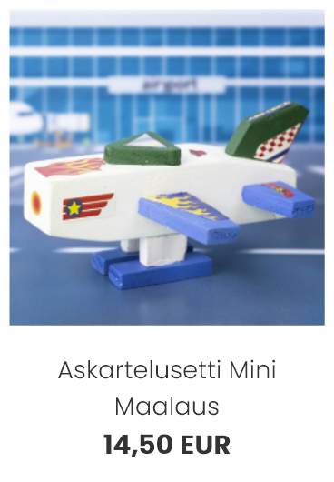 Maalatkaa puuosat lempiväreillä ja kootkaa auto Multi glue -liimalla. Koristelkaa auto hauskoilla tarroilla ja auto on valmis tuntikausien hauskanpitoon.
