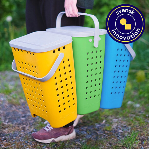 Svenskutvecklat sopsorteringssystem med smarta detaljer för enkel och hygienisk avfallshantering. Komprimerande lock, avtagbar botten, ventilationsgaller och patenterat haksystem gör kärlen smidiga att använda, bära och rengöra. Tillverkat i Sverige av bioplast från skogsrester. |
