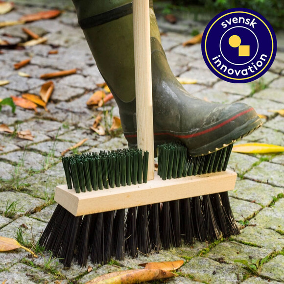 | | Två borstar i en som håller rent både ute och inne. Slitstark och miljövänlig design i trä och propenplast. |