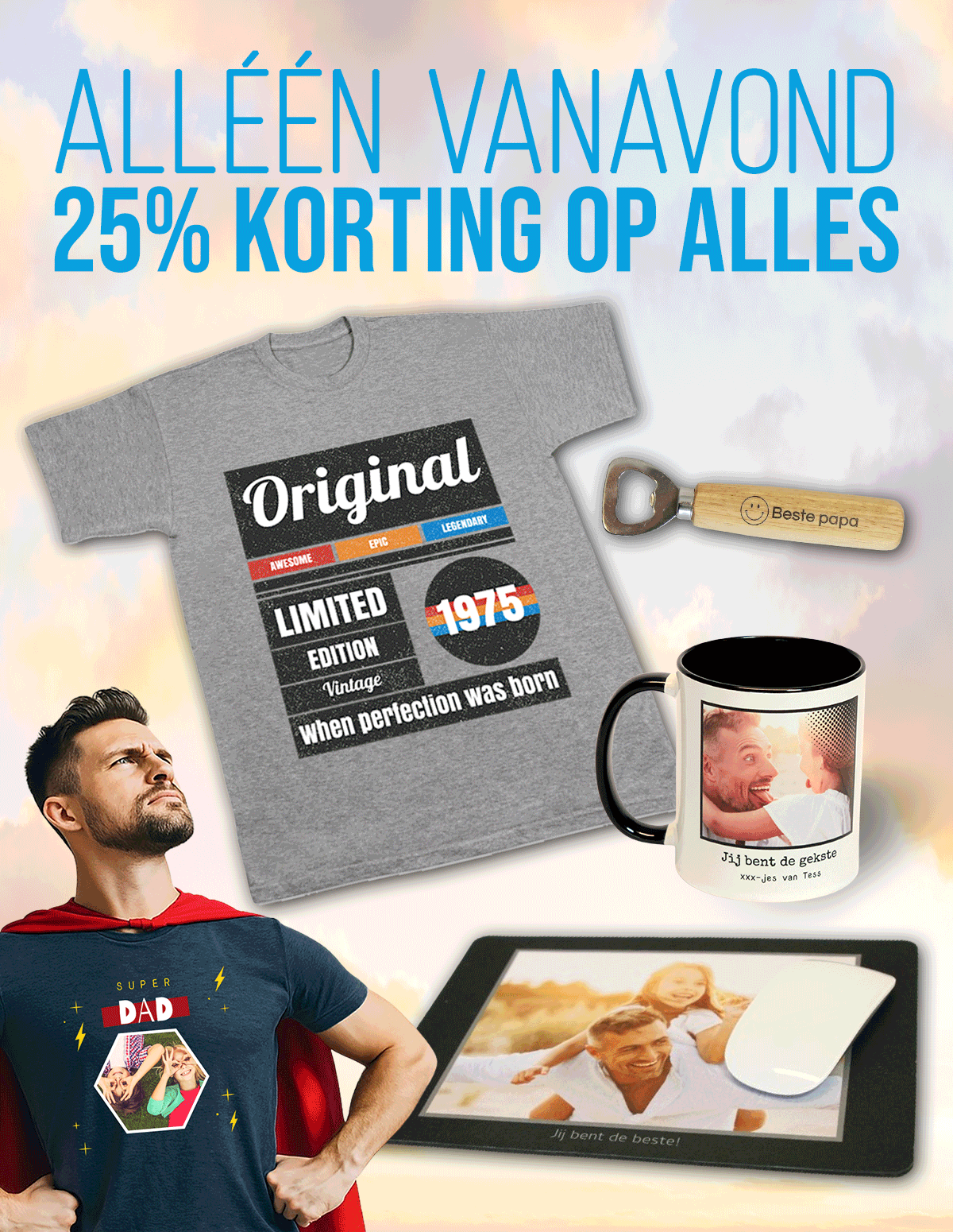 Het is Shopping Night bij smartphoto! Alleen vanavond profiteer je van 25% korting op ons complete assortiment. Dit is dus het perfecte moment om jouw fotoboek af te maken of leuke Vaderdag cadeaus te shoppen. Heel veel shopplezier!