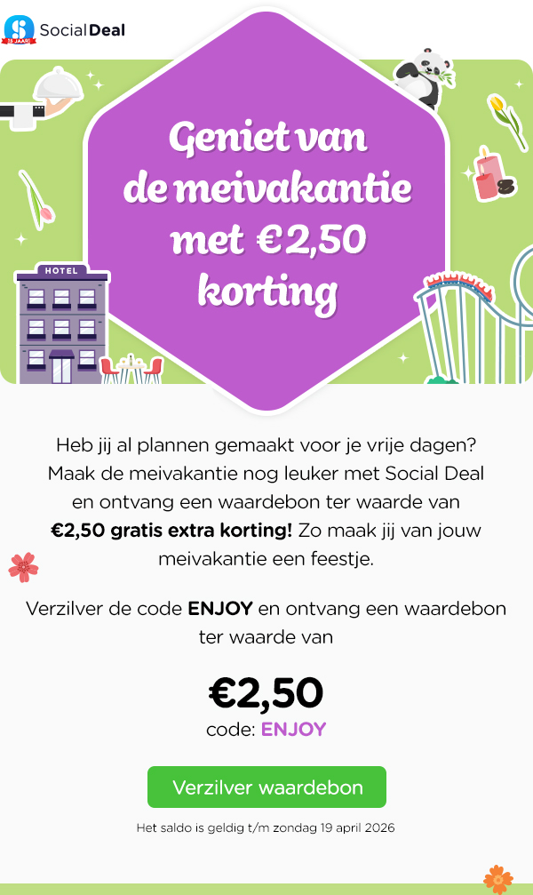 🤩 Gratis €2,50 extra korting: ga eropuit in de meivakantie! 💜